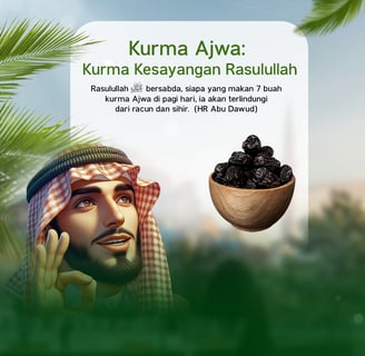 “Barang siapa yang makan tujuh butir kurma Ajwa di pagi hari, maka pada hari itu ia akan terlindung dari racun dan sihir.”